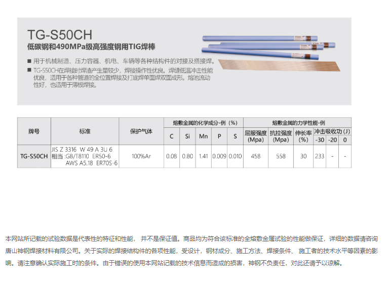 TG-S50CH 低碳鋼和490MPa級(jí)高強(qiáng)度鋼用TIG焊棒